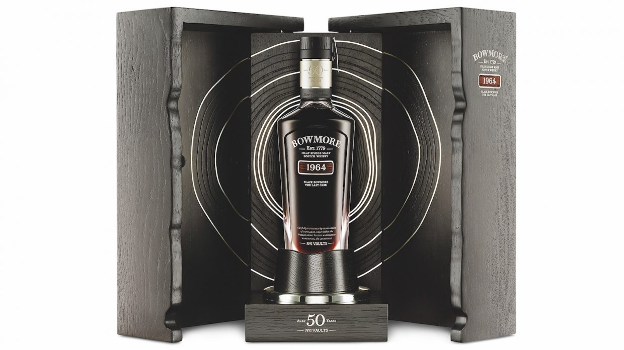 Black Bowmore 1964 Final Edition—40.9%, $25,000 Like the other legendary Black Bowmore offerings, the fifth and oldest release was distilled on November 5, 1964. After half a century, this first-fill sherry cask yielded just 159 hand-blown bottles of tropical fruit and peat-smoked laced malt, packaged in a Scottish oak cabinet with silver adornments.