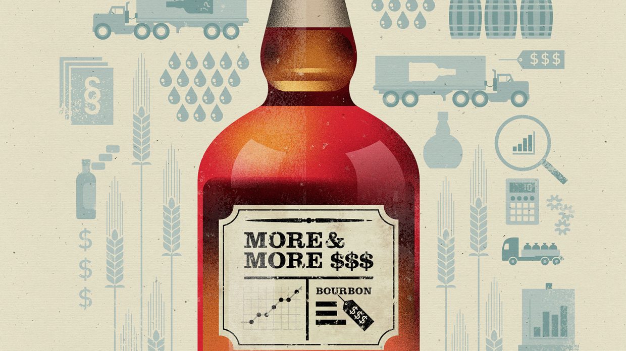 After the still, the costs stack up. The average barrel costs $190, glass bottles range from $1 to $2, corks are 35 cents, and labels are upward of $1 per bottle. The more labels, the more you can charge, Thompson says. And of course, nobody can escape the largest expense of all—taxes. According to the Kentucky Distillers Association, 60 percent of the average bourbon cost is tax.
