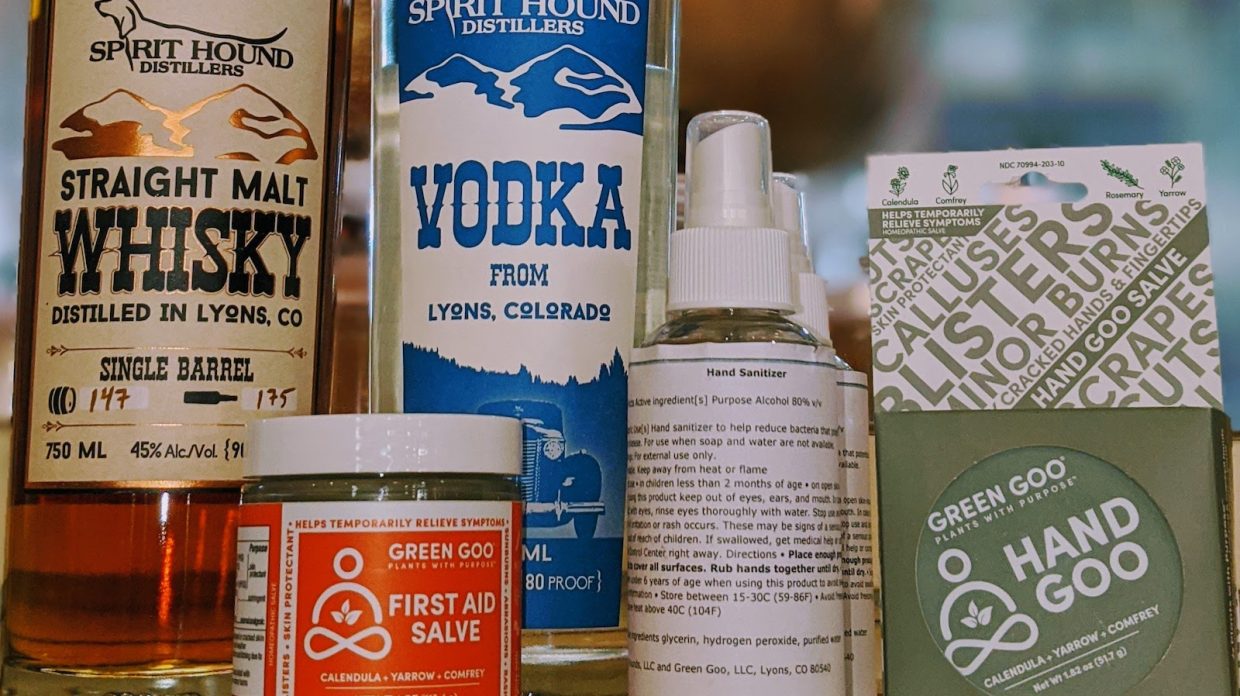 Green Goo to package it in 1,000 individual-unit spray bottles, making the first delivery that same day. “Our biggest hurdle, as soon as the liquid [raw materials] comes in, is that I have no packages to put it in,” Engelhorn says. “We're struggling with this, not just here at Spirit Hound, but throughout the state. By golly, I hope we all survive this, and we can have a big ole party in a few months, and toast to our health.”